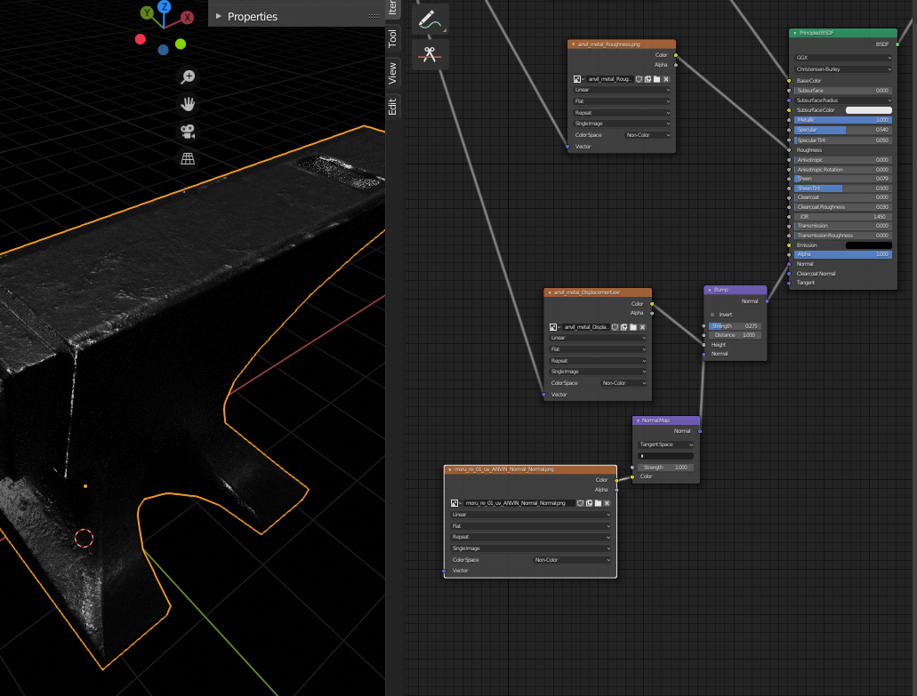 하이폴리곤 베이크 노멀맵은 범프의 노멀에 연결 -하면 두개가 같이 섞어 보입니다요.