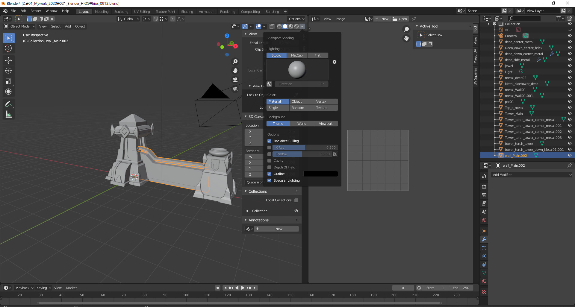 가운데 뜬 창에 Backface Culling을 체크합니다.( 창은 위쪽 쉐이딩 설정끝 화살표를 누르면 나옵니다)