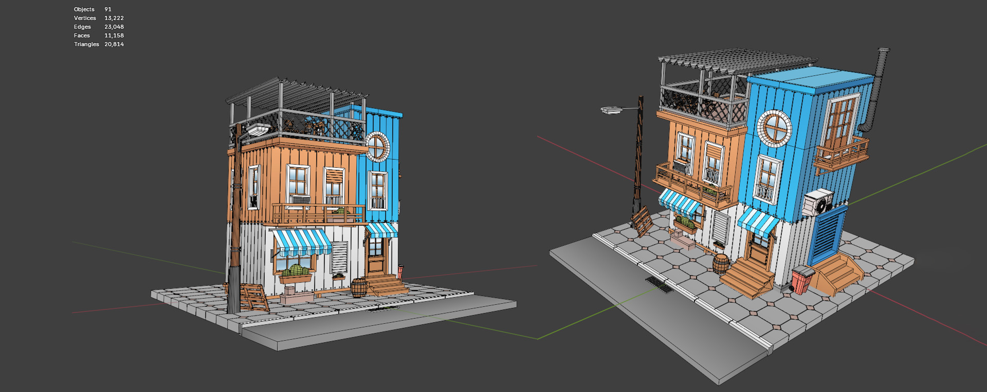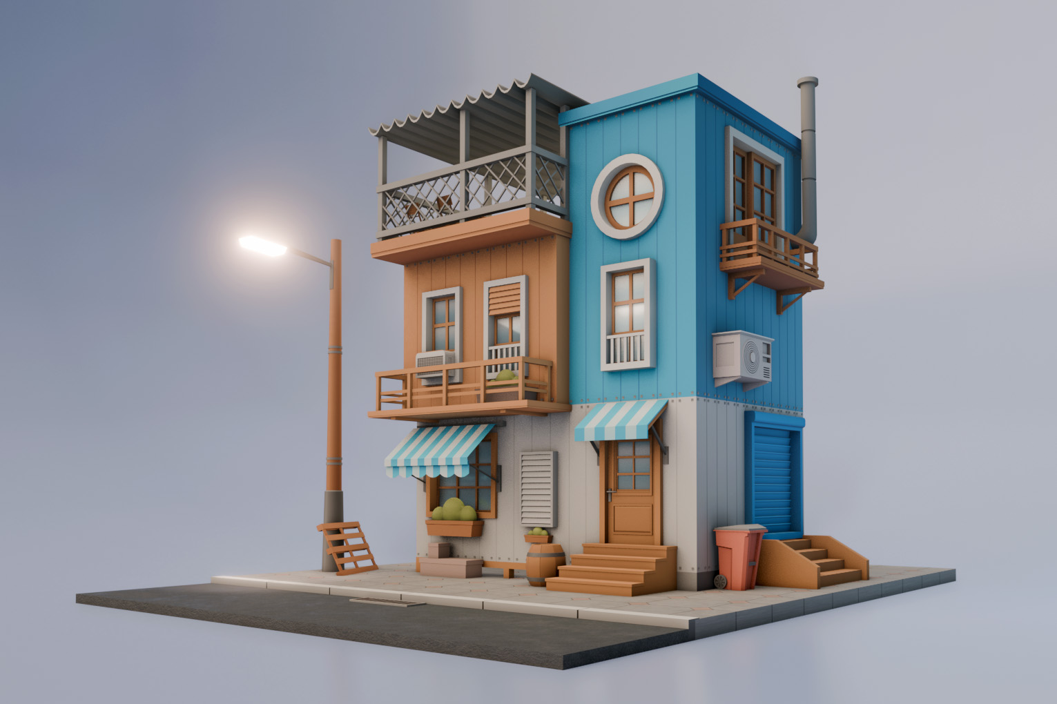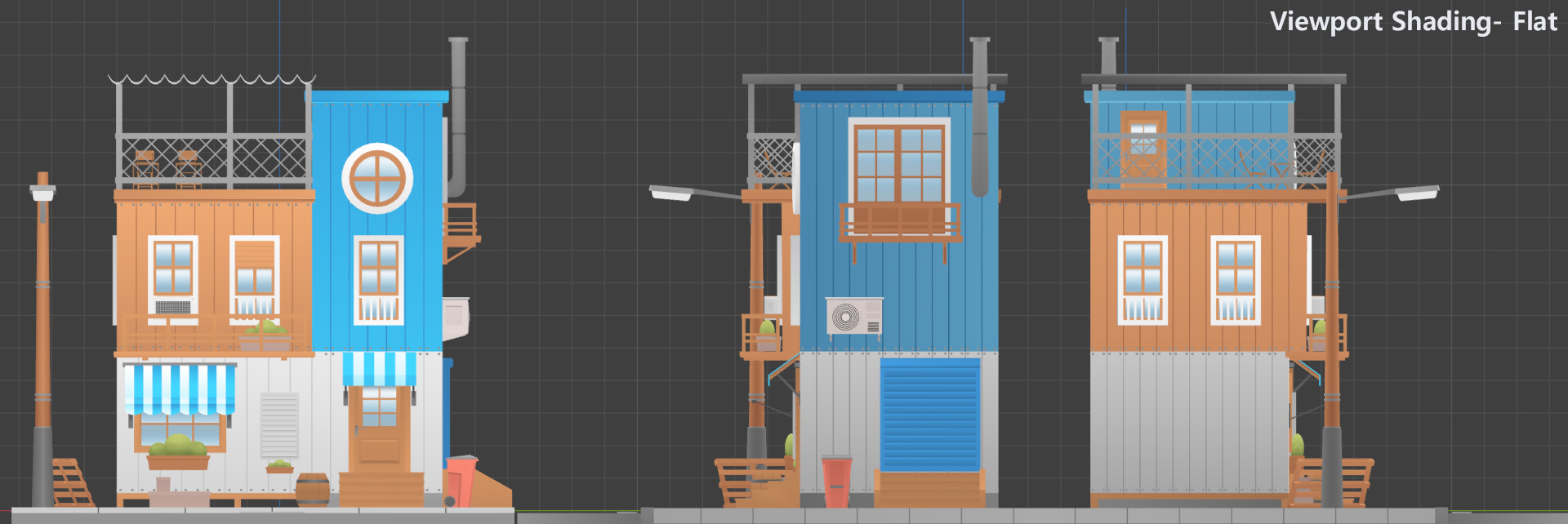 1. 모바일 스타일의 그라데이션 텍스처링 하기 좋은 형태감과 연습용으로 작업하기 좋은 단순하고 귀여운 건물 스타일 이어서.